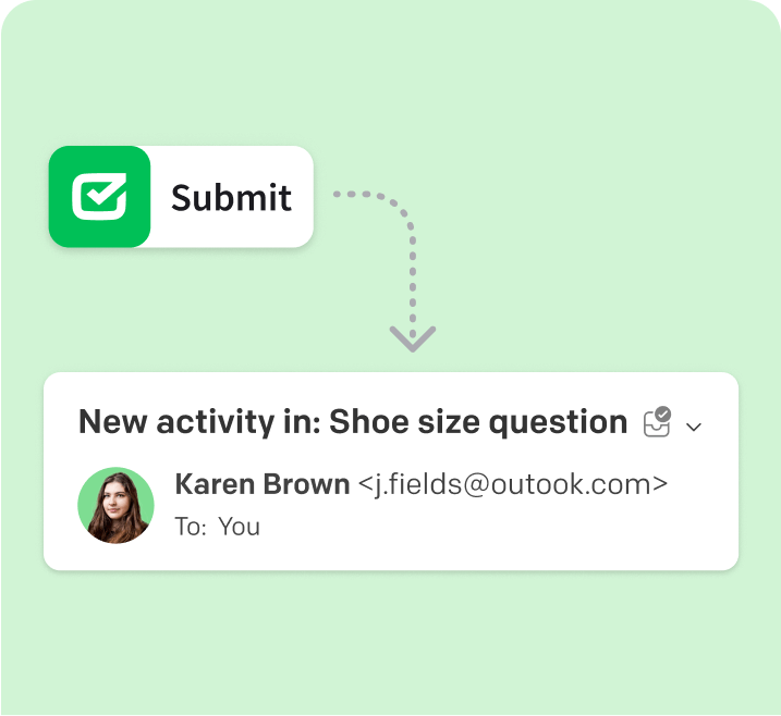 The customer receives a ticket response that looks like a friendly email message and is then asked to provide feedback about your service.