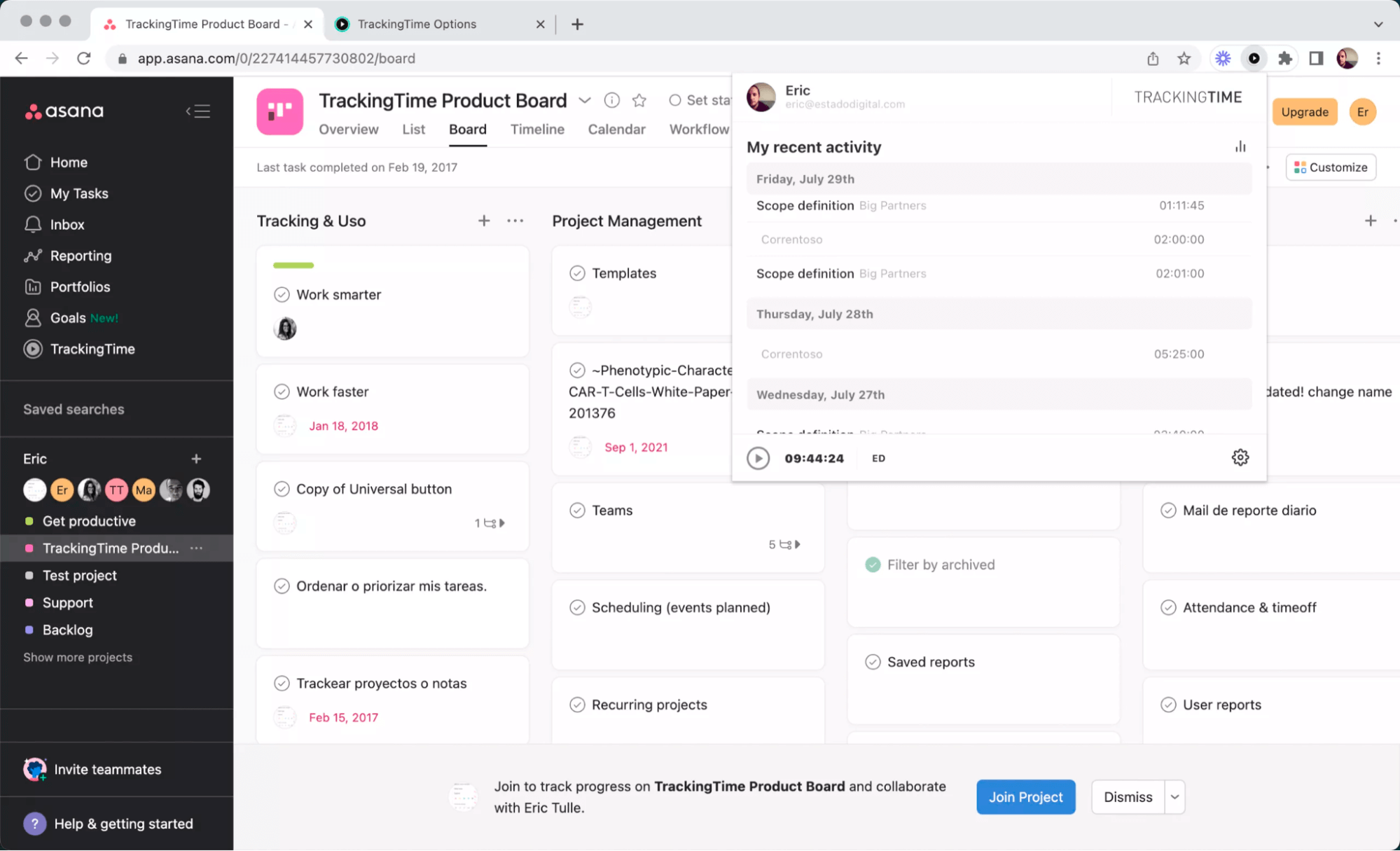 Kanban board for task management.