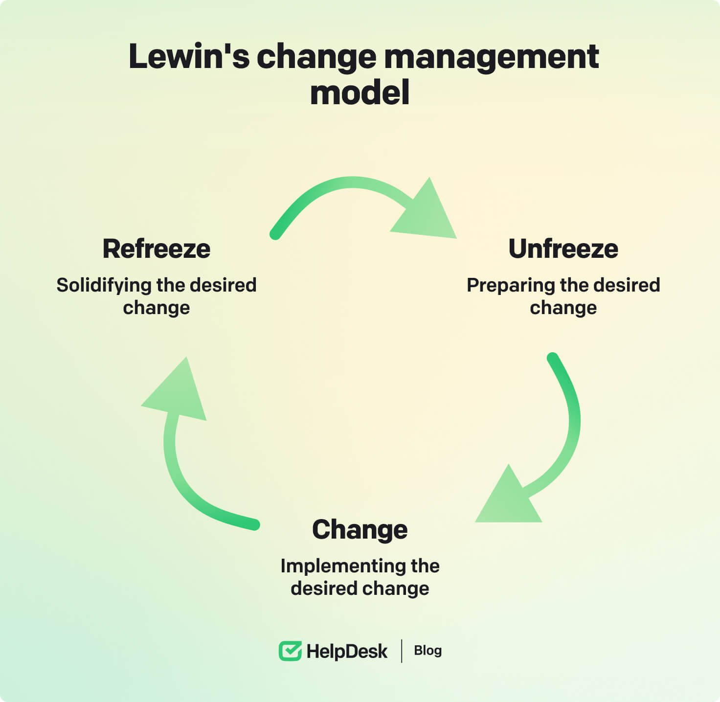 Kurt Lewin’s theory follows a chunk-based concept, breaking change down into three phases: