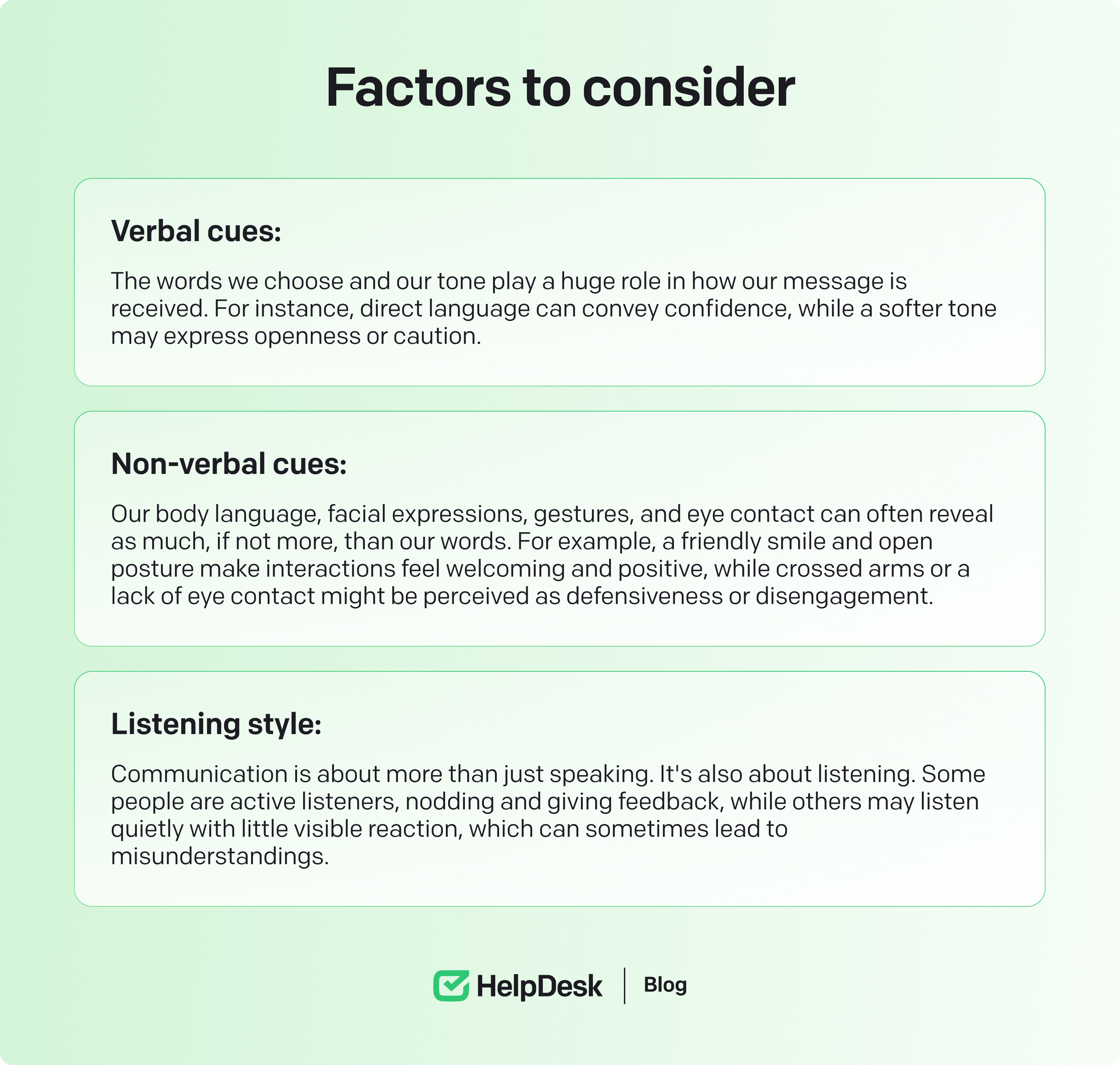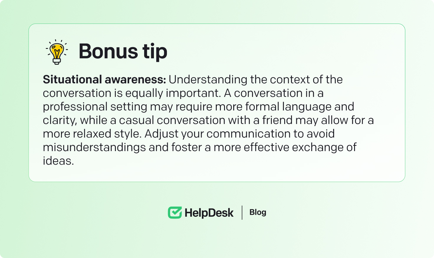 Check for understanding: After delivering your message, ask if the recipient understands. You can ask questions like, “Does that make sense?” or “Is there anything I can clarify for you?”
