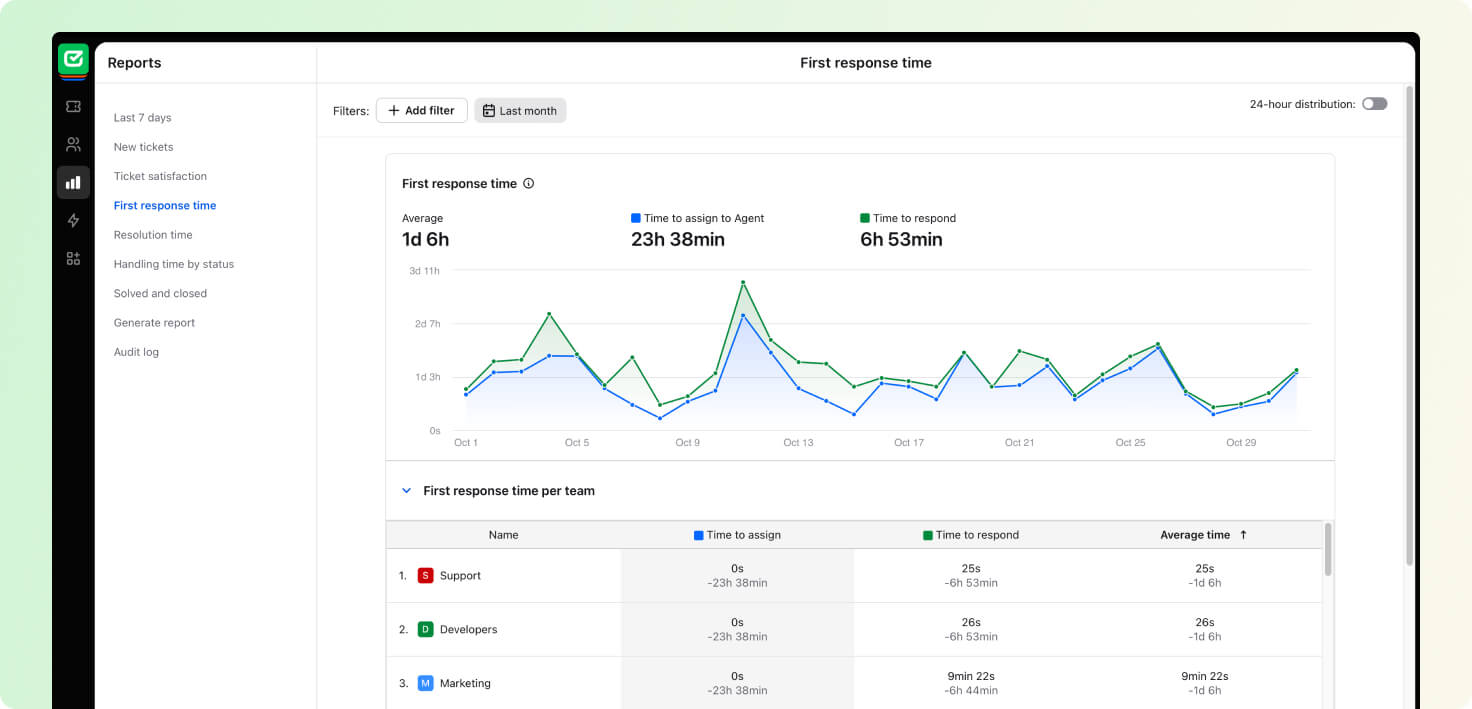HelpDesk utilizes AI to analyze incoming tickets and intelligently route them to agents based on issue type, customer priority, and agent expertise. It ensures that each ticket is handled by the right person, reducing resolution times and improving efficiency.