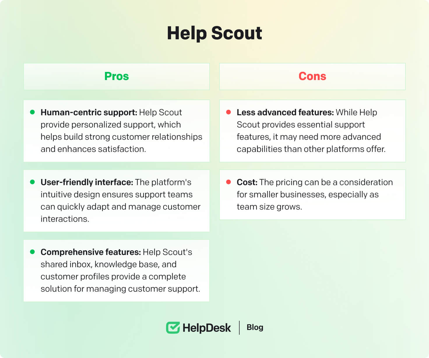 Shared inbox: Help Scout’s shared inbox feature allows support teams to manage customer emails collaboratively, ensuring timely responses and no missed inquiries.