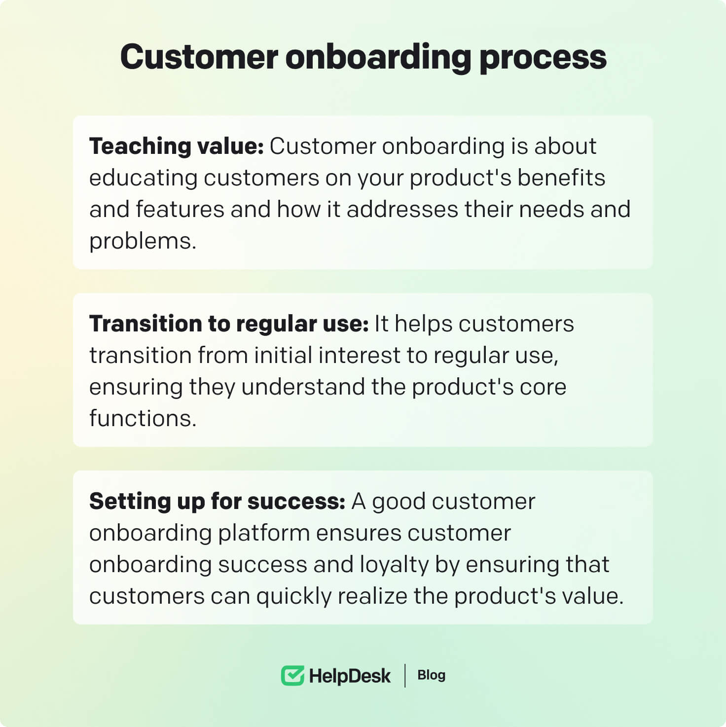 Continuous learning and adaptation: Stay informed about industry trends and best practices in customer onboarding. Continuously incorporating new insights and innovations into the customer onboarding process ensures it remains relevant and practical.