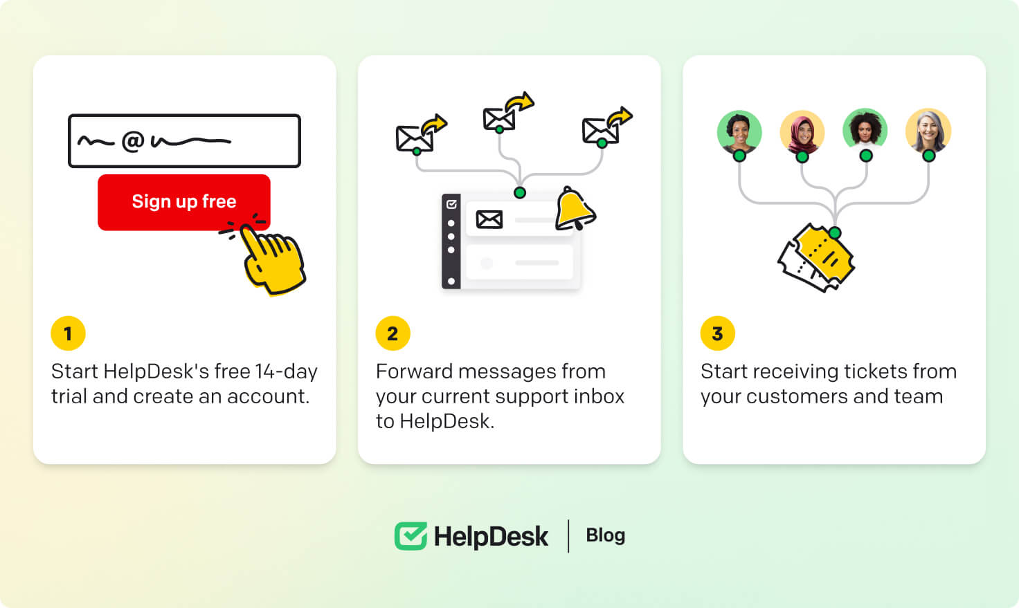 Experience the perfect customer onboarding with HelpDesk. 🤝 Join our tool for a free 14-day trial. 👏