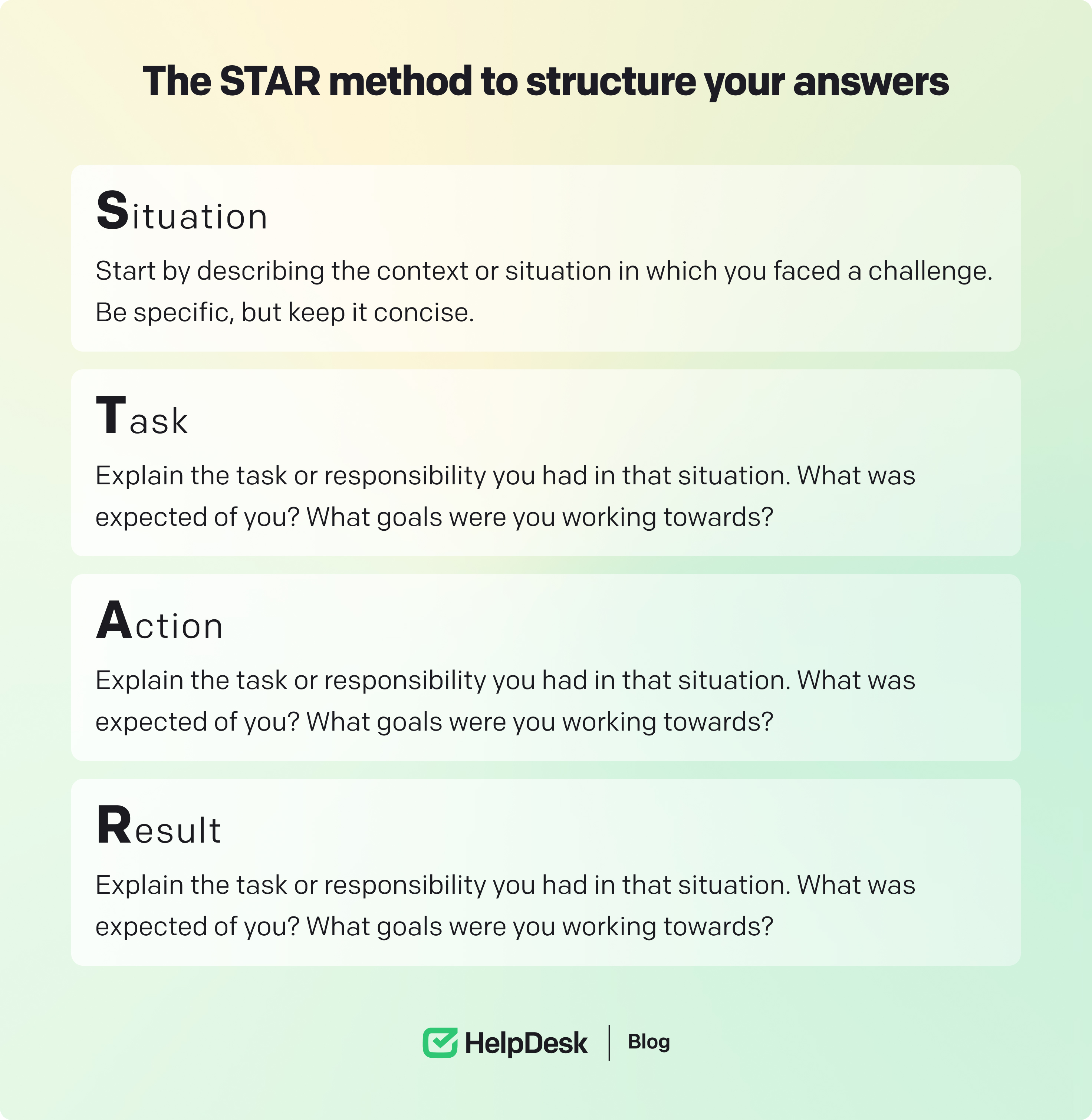 Use the STAR method to structure your answers