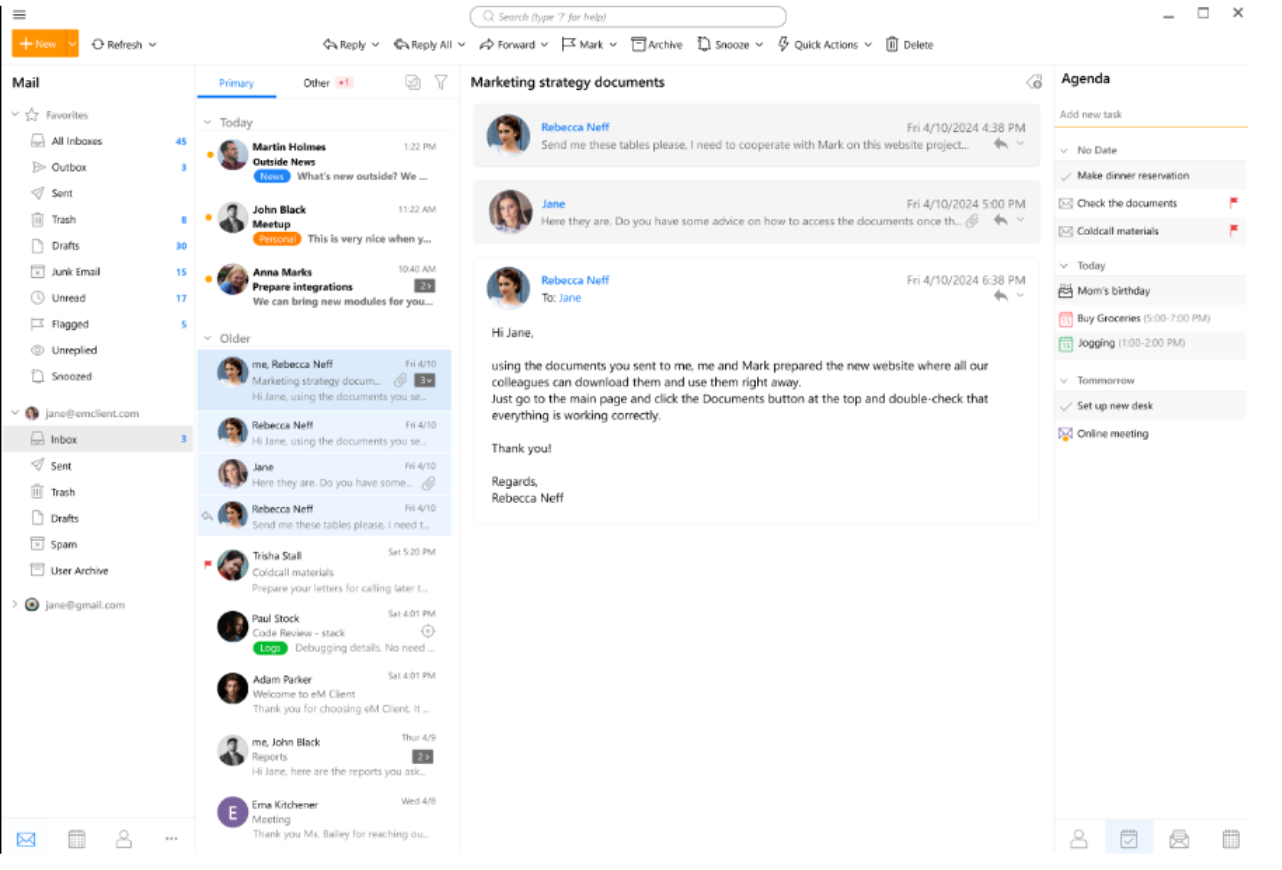eM Client is a powerful desktop email client designed for Windows and macOS. It offers a wide range of features tailored to enhance productivity and communication. With its support for multiple email addresses and account types, extensive tools, and user-friendly interface, eM Client provides a one-stop solution for managing emails, tasks, and more — all within a single platform.
