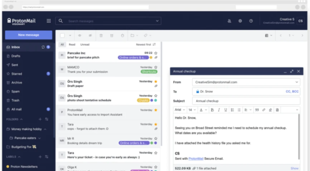 Modern interface: TProton Mail’s clean and intuitive design makes it easy for users to manage their inboxes and compose messages without compromising security.
