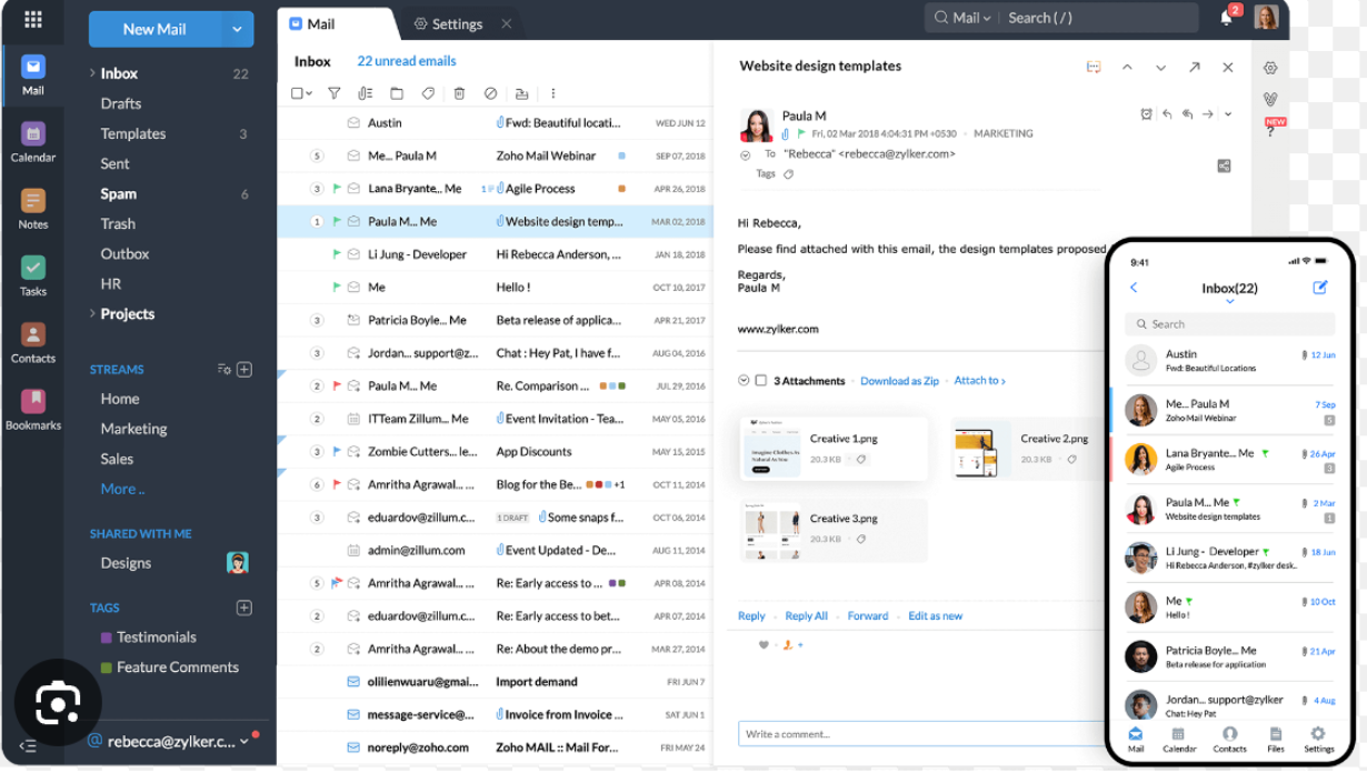 Integration with Zoho Suite: Zoho Mail seamlessly integrates with other Zoho applications, such as Zoho CRM, Zoho Projects, and Zoho Docs, creating a unified ecosystem for productivity and collaboration.