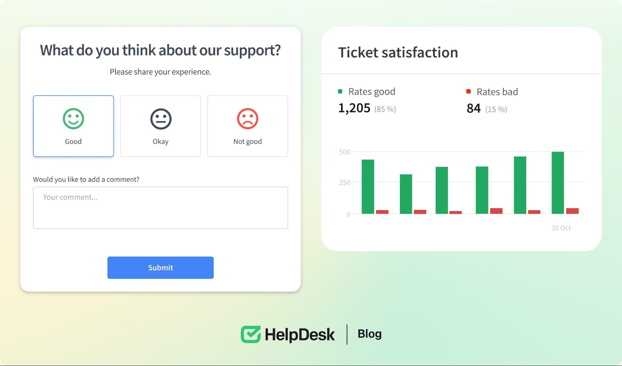 Solutions like HelpDesk software can automate IT and HR workflows, create a collaborative ticketing system, track satisfaction trends, and perform sentiment analyses on your team members. They can also help identify each employee’s needs and preferences and foster a collaborative environment that leads to true employee satisfaction.
