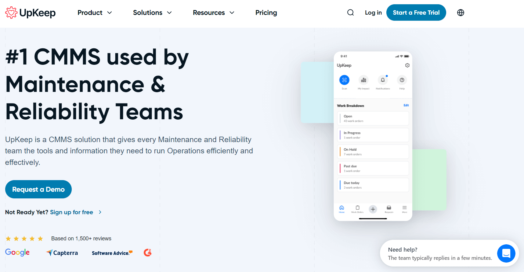 Suppose you’re running a company with multiple remote teams running repair or maintenance jobs across various locations. UpKeep may be the scheduling software you need to maintain operational efficiency. Not only does it eliminate the need for individual team members to fill in remote work orders, but it also helps managers with resource allocation.