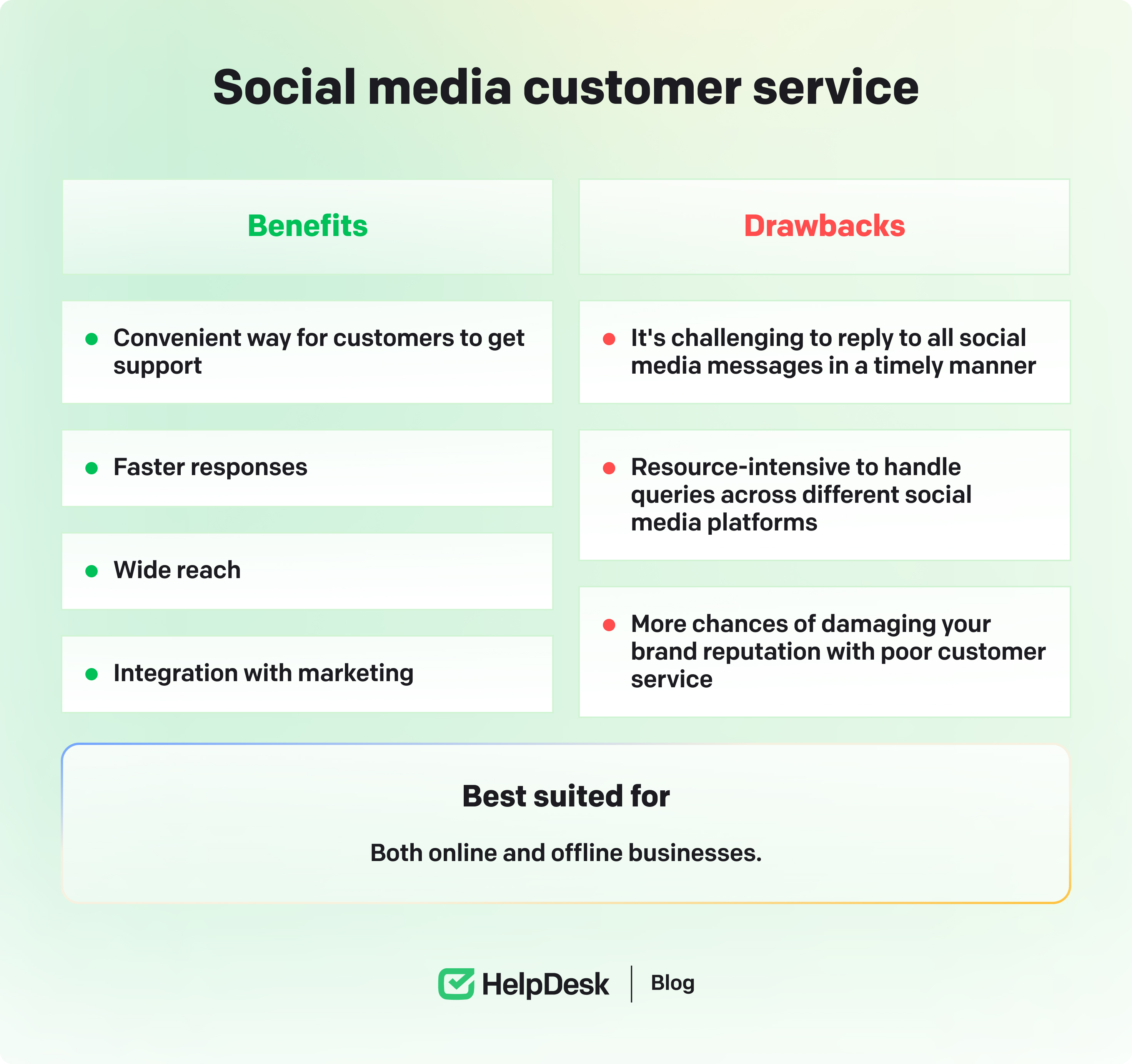The industry you work in also influences what customer service works best. For example, ecommerce and retail businesses can find live chat, chatbots, ecommerce help desks, and social media useful, while IT companies find on-site support necessary.